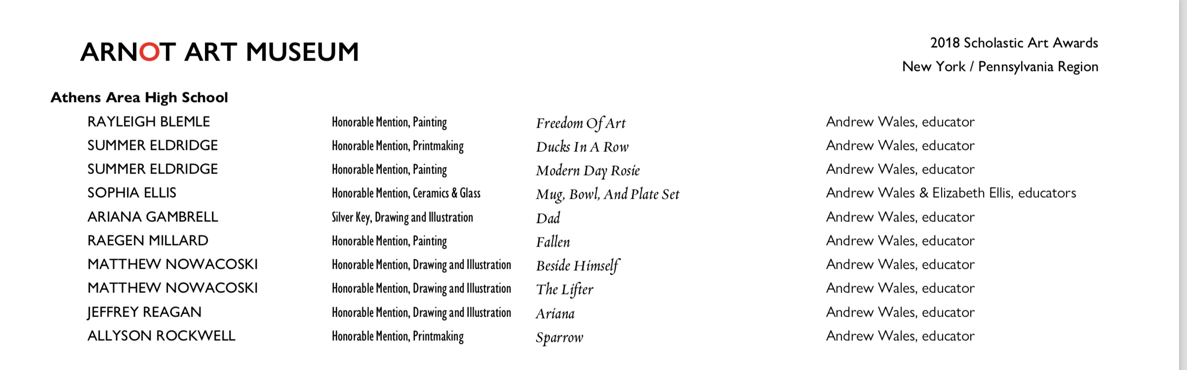 ArnotArtMuseumAwards