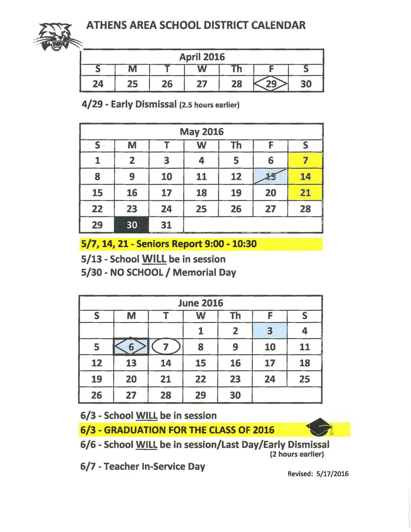 Athens Revised End of Year Calendar